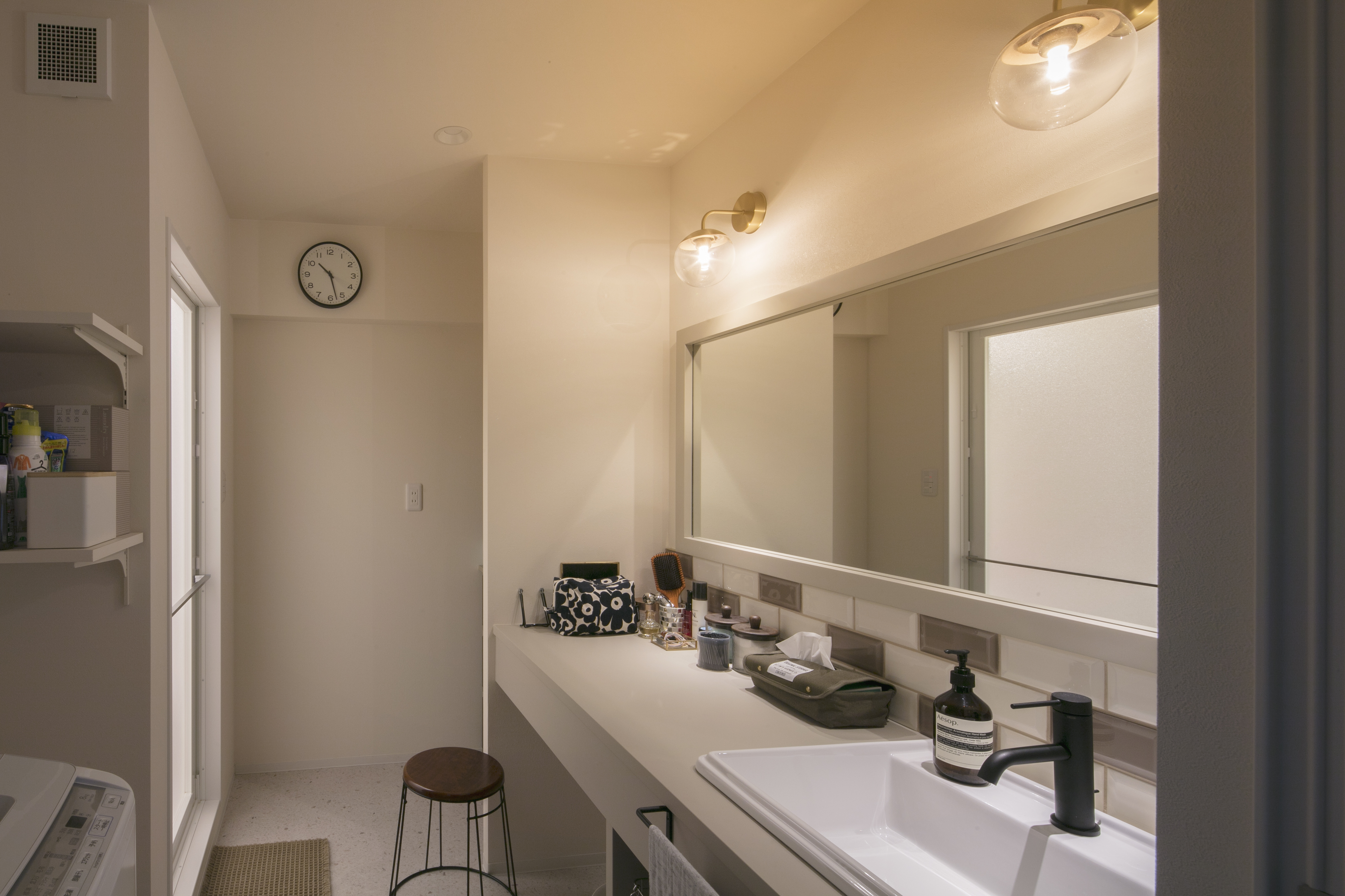 - 広々とした造作洗面台は圧巻!