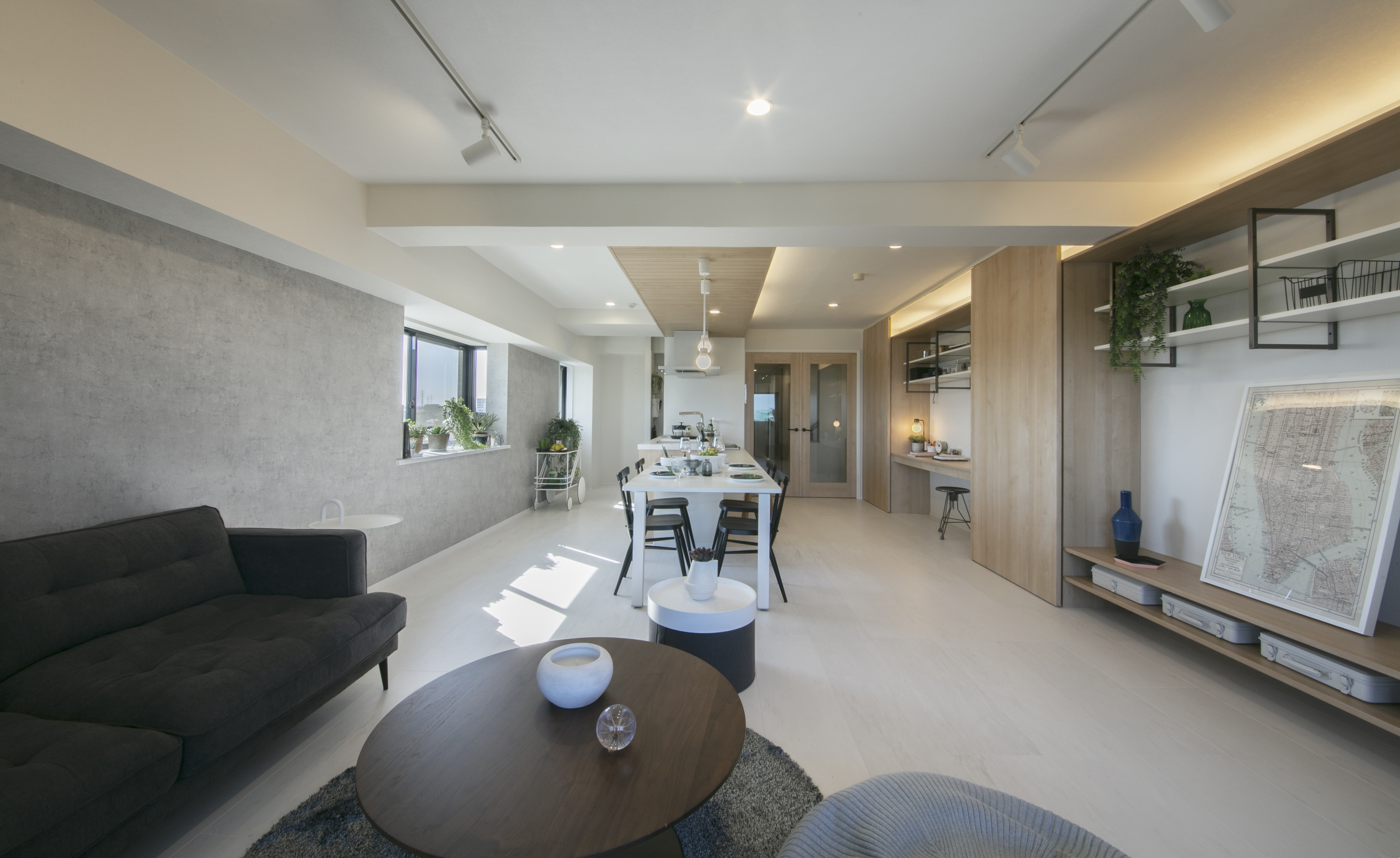 - 壁面に収納や棚、ワークスペースを設置!
