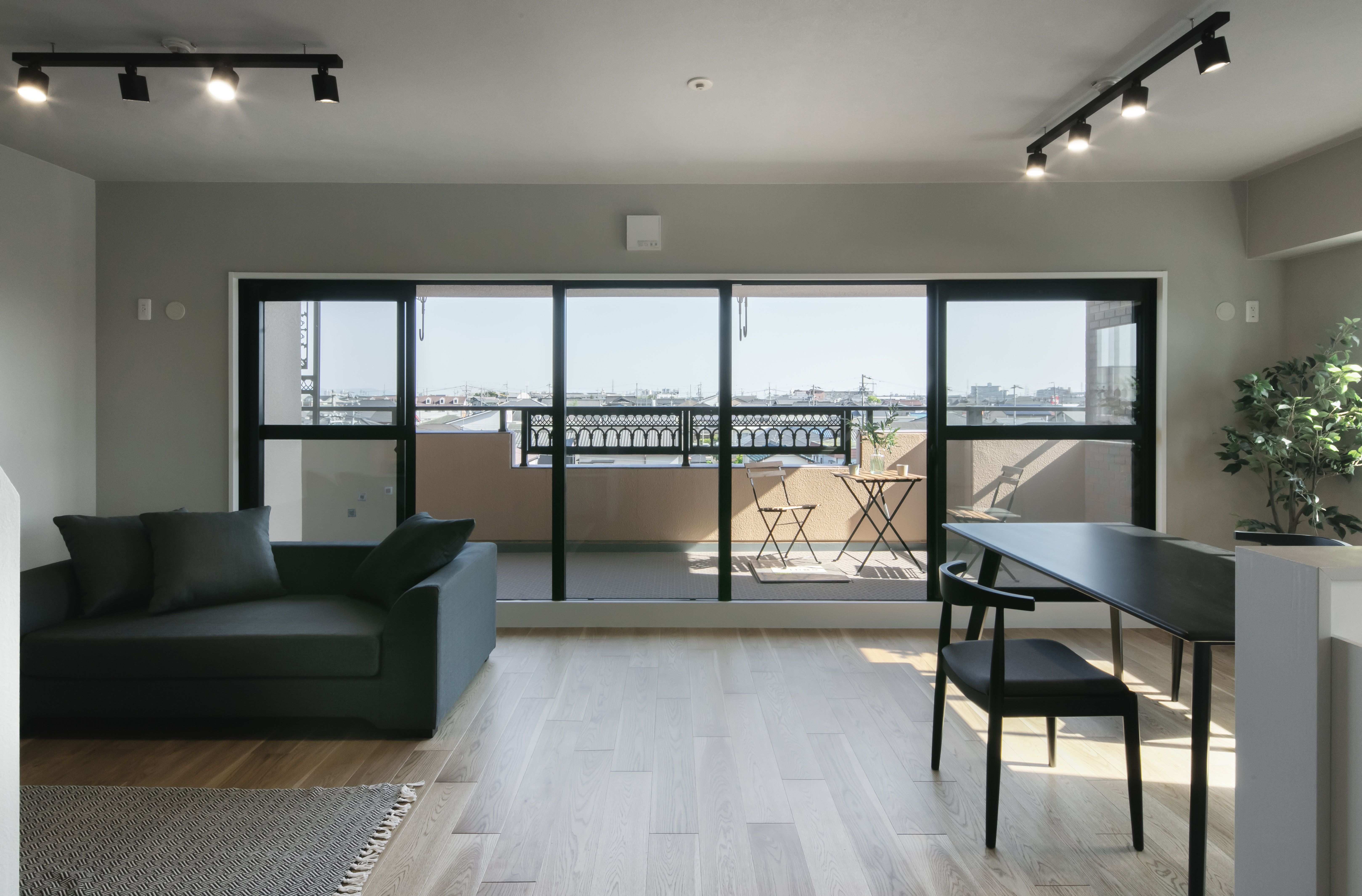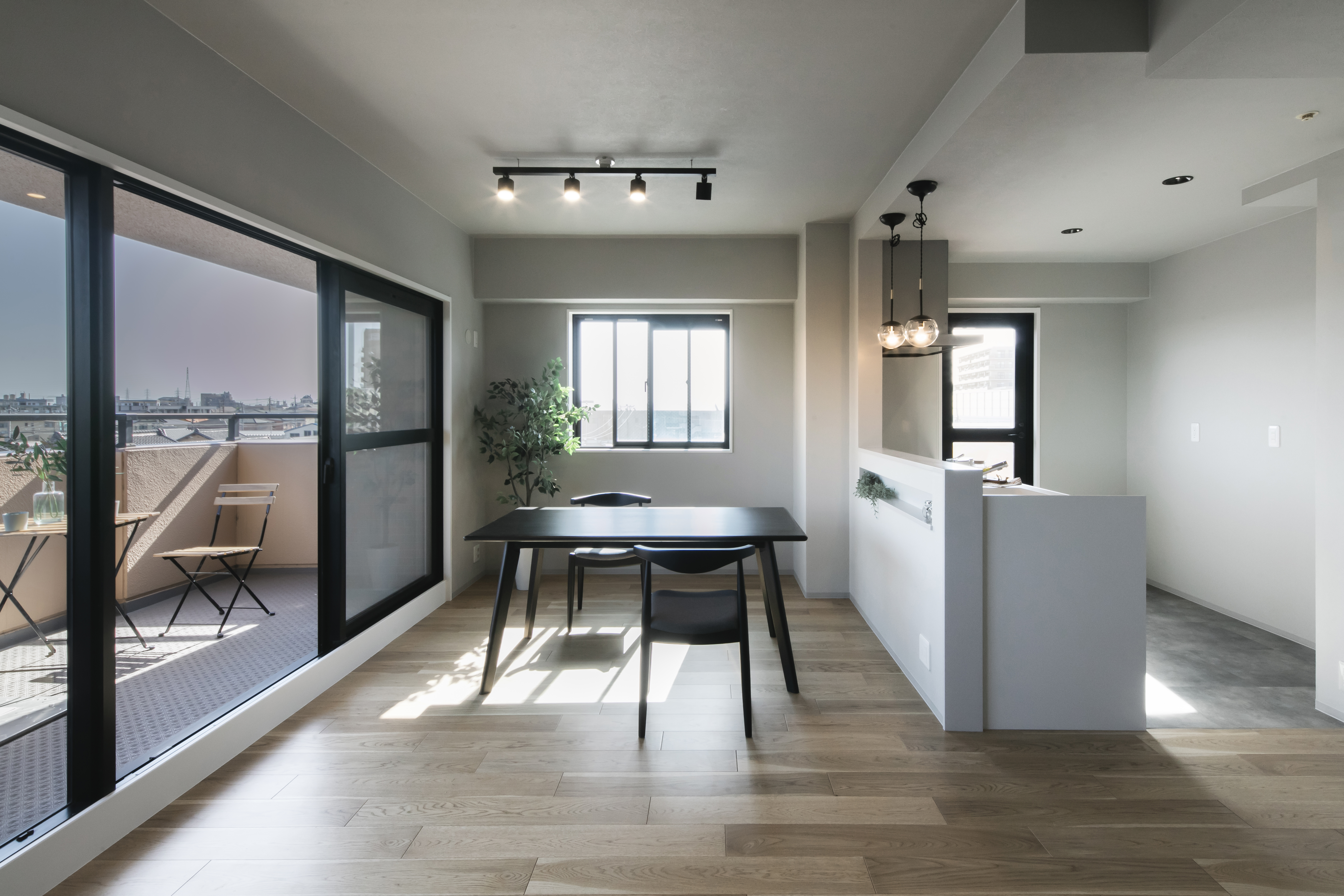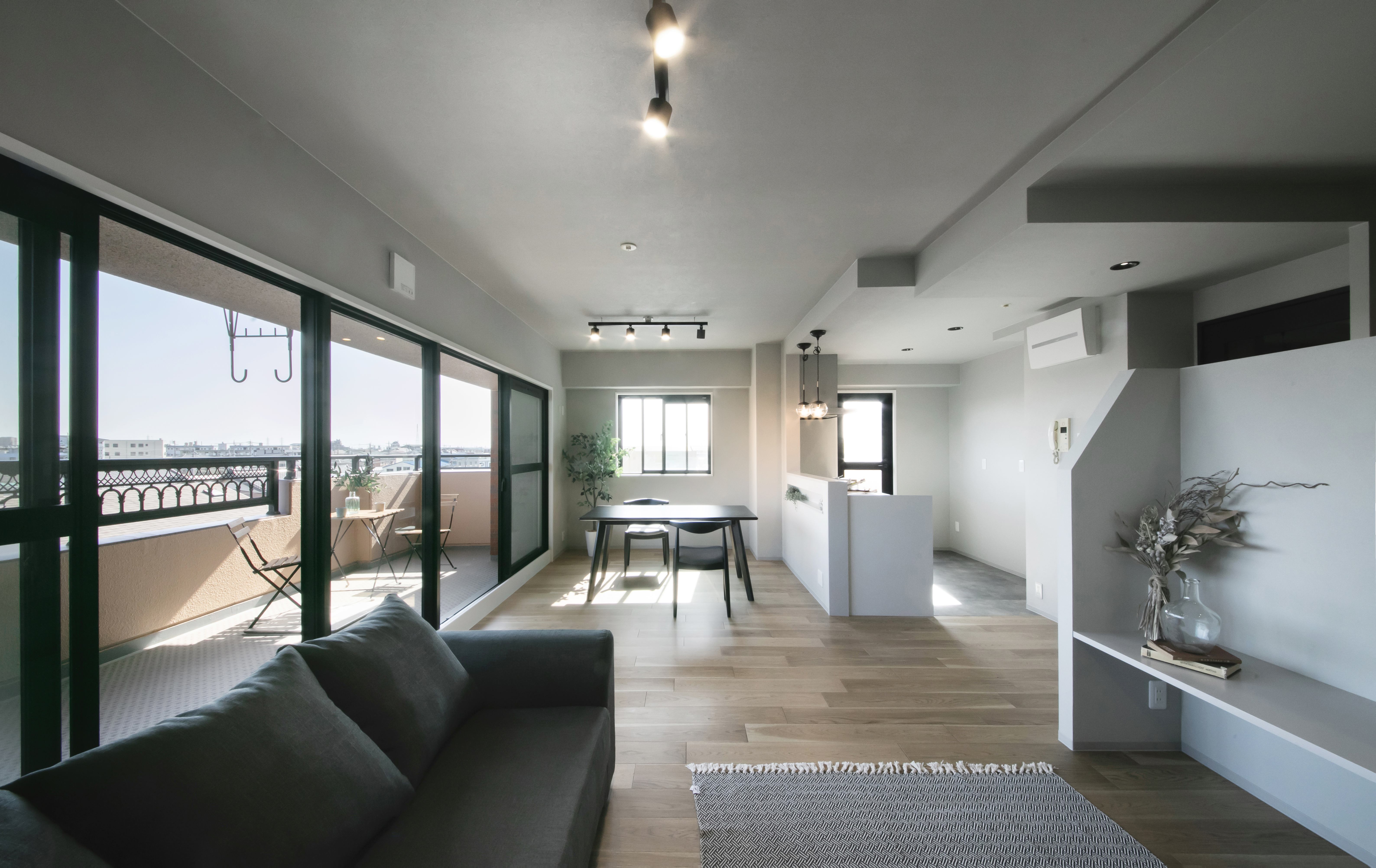 全体に色素の薄いインテリアでまとまっているので、どんな家具やファニチャーでもコーディネートしやすい空間です。