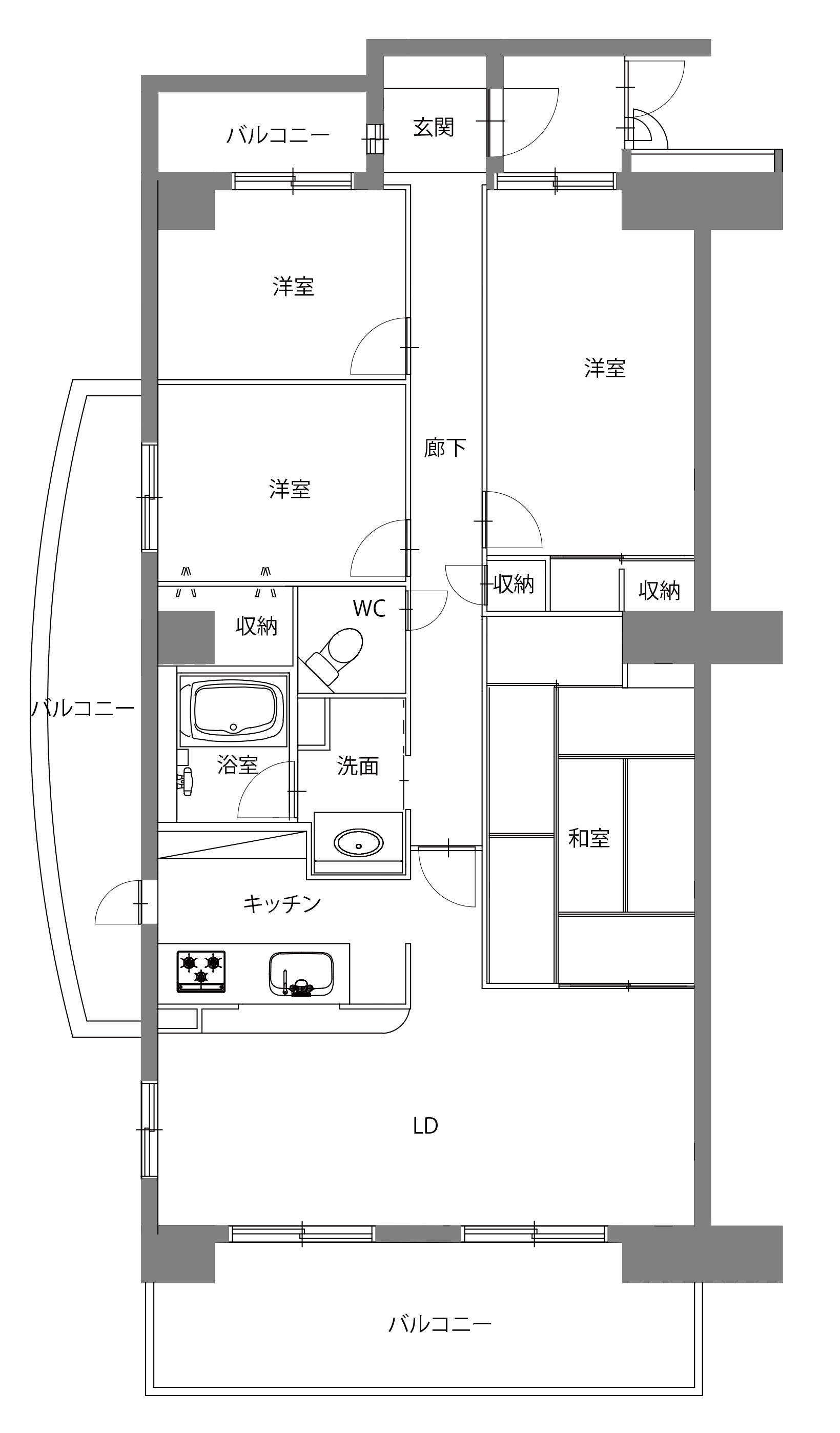 - 洗面と洗濯機の位置を入れ替えて、脱衣スペースを広げました