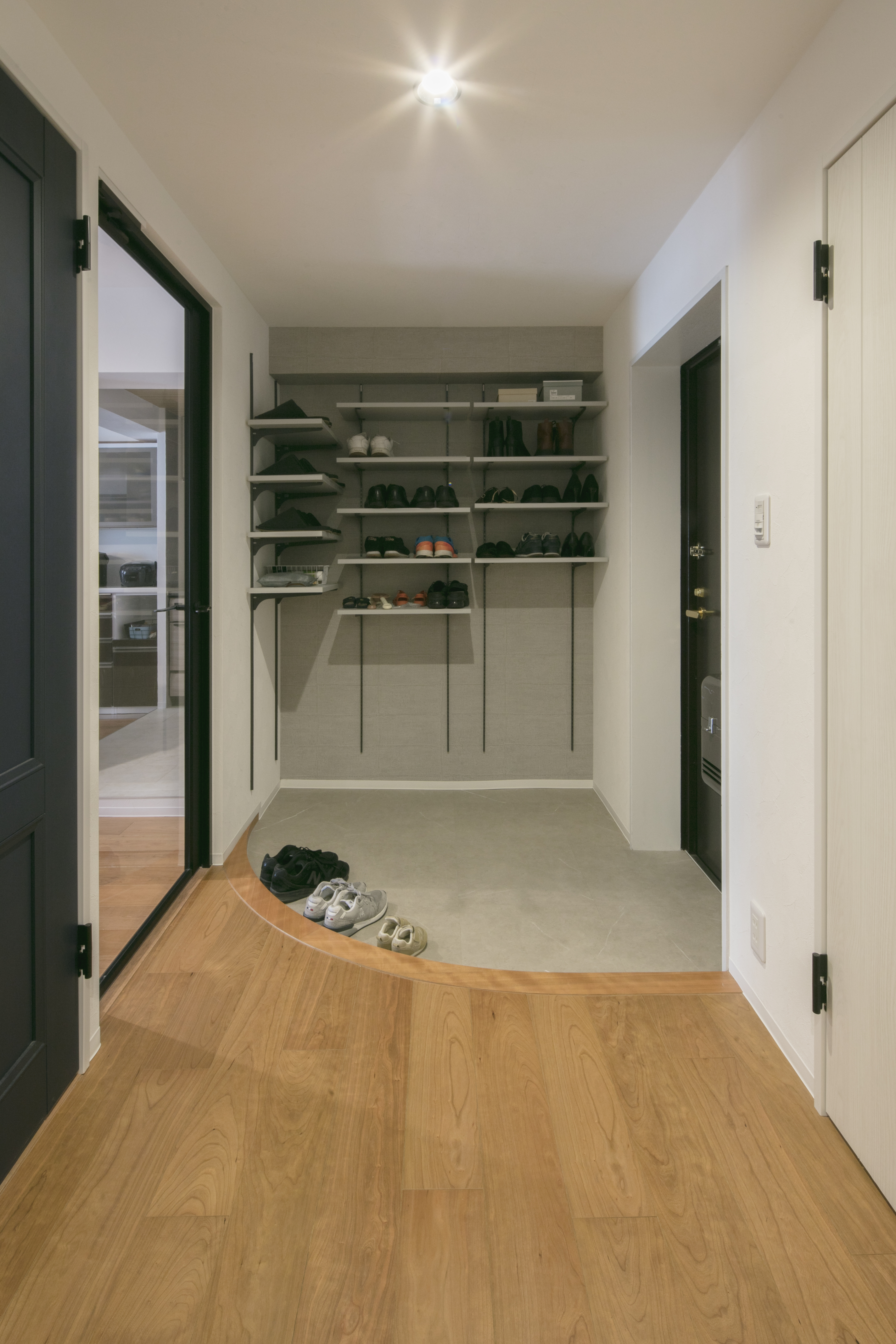 - リビングの一角にファミリークローゼットを設け、動線の一角に家族の基地