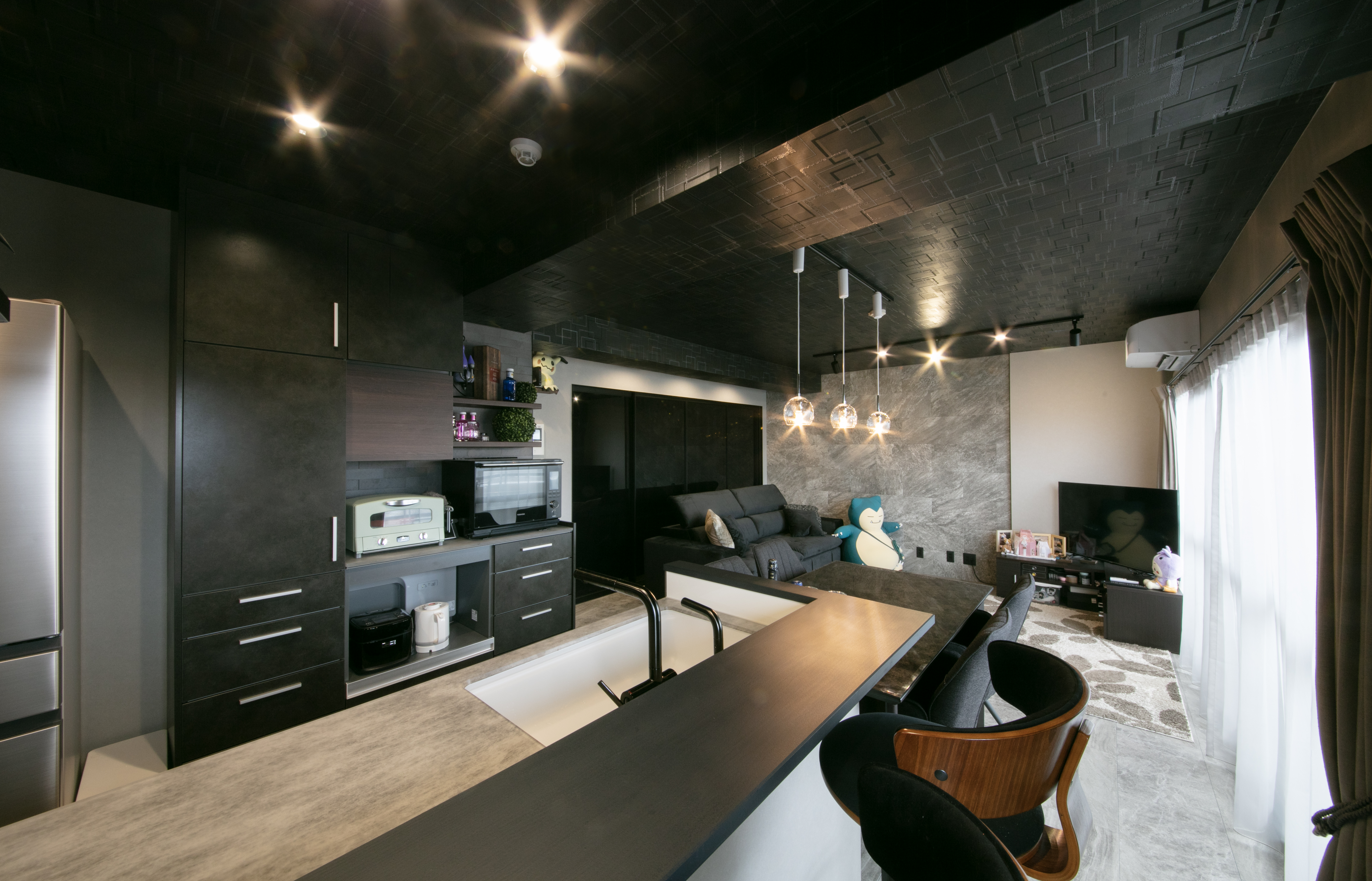 - 黒を基調としたモノトーンの配色でホテルライクなラグジュアリーインテリア